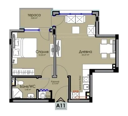 | Вид на имота | Двустаен апартамент | Площ | 63.39 |