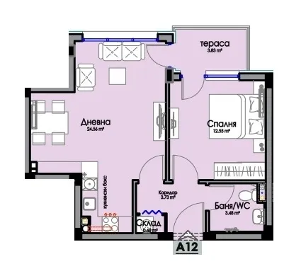 | Вид на имота | Двустаен апартамент | Площ | 65.43 |
