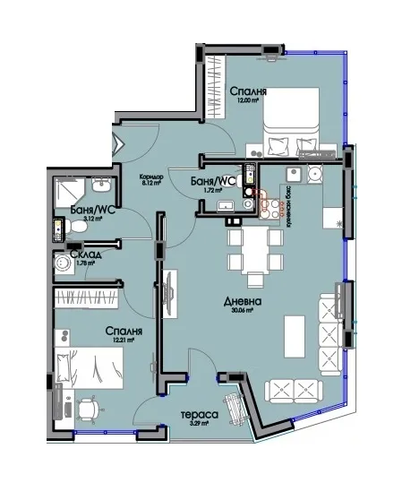 Функционално разпределение на апартаментите – двустайни, тристайни и четиристайни