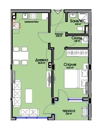 Едностаен апартамент 39,03 7 1 1 2027