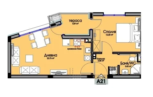 | Вид на имота | Двустаен апартамент | Площ | 62.03 |