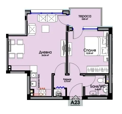 | Вид на имота | Двустаен апартамент | Площ | 64.87 |