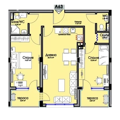 Двустаен апартамент 61.25 8 1 1 2026