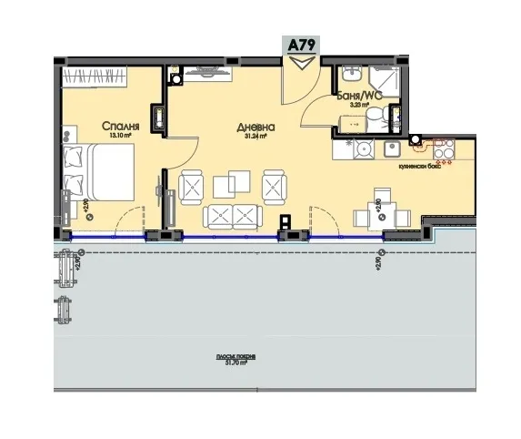 | Вид на имота | Двустаен апартамент | Площ | 115.09 |