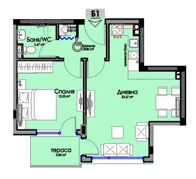 | Брой спални | 1 | Брой бани | 1 |