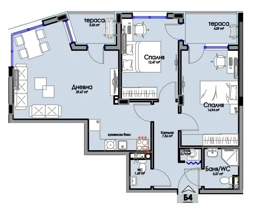 Функционално разпределение на апартаментите – двустайни, тристайни и четиристайни