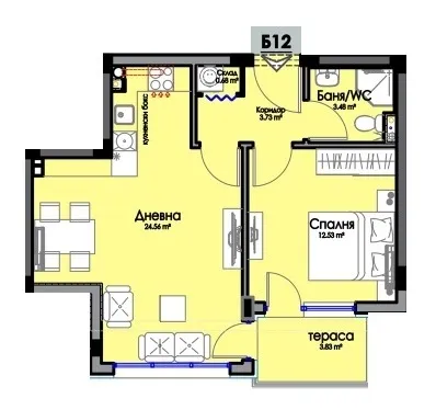 | Вид на имота | Двустаен апартамент | Площ | 64.87 |