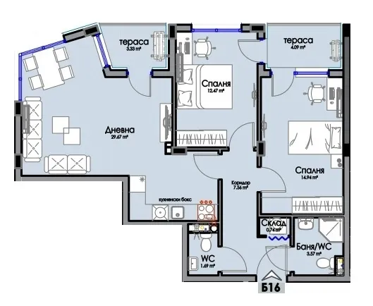 Функционално разпределение на апартаментите – двустайни, тристайни и четиристайни