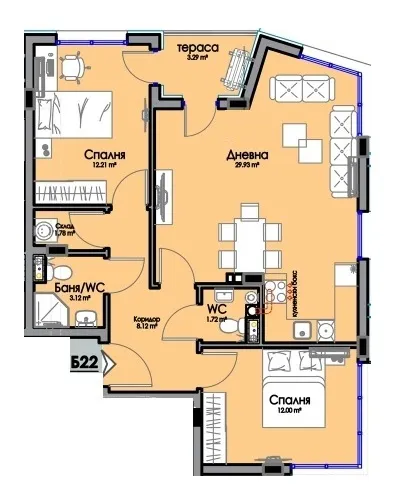 | Вид на имота | Тристаен апартамент | Площ | 98.51 |