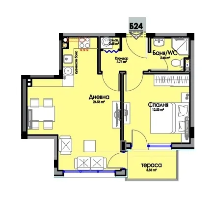 | Вид на имота | Двустаен апартамент | Площ | 65.72 |