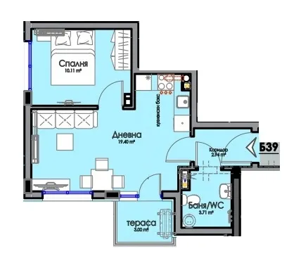 | Вид на имота | Двустаен апартамент | Площ | 54.66 |