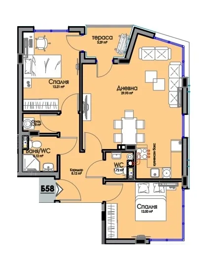 Функционално разпределение на апартаментите – двустайни, тристайни и четиристайни