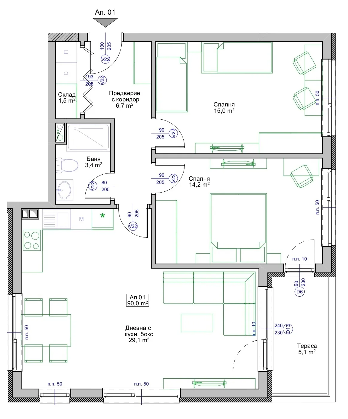 | Вид на имота | Тристаен апартамент | Площ | 100.66 |