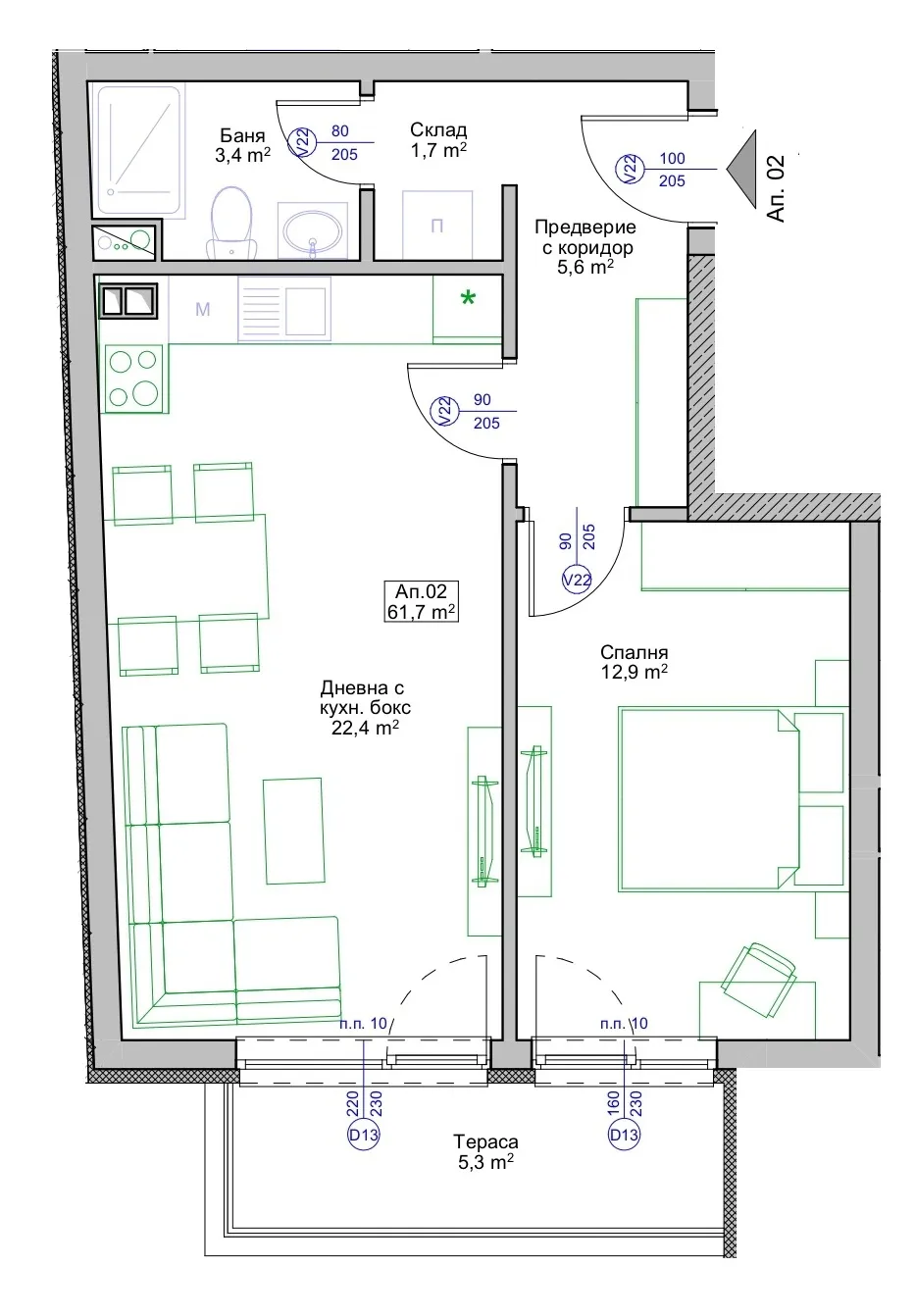 Жилищната сграда е проектирана по високи стандарти, с модерна архитектура и внимание към всеки детайл. Висококачествените материали и функционалното разпределение на апартаментите гарантират комфорт и удобство за бъдещите собственици.