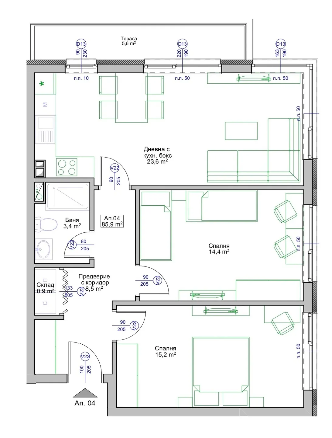 | Вид на имота | Тристаен апартамент | Площ | 96.04 |