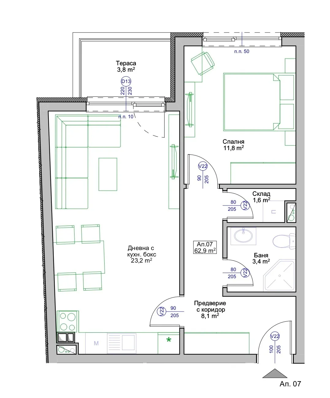 | Вид на имота | Двустаен апартамент | Площ | 67.56 |