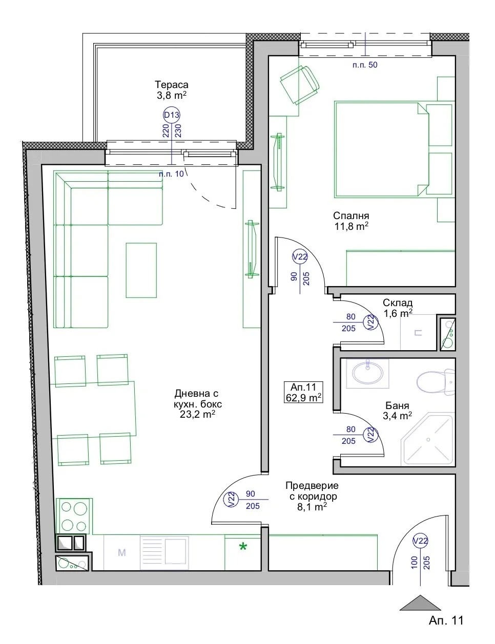 Едностаен апартамент 31.64 2 1 1 2025