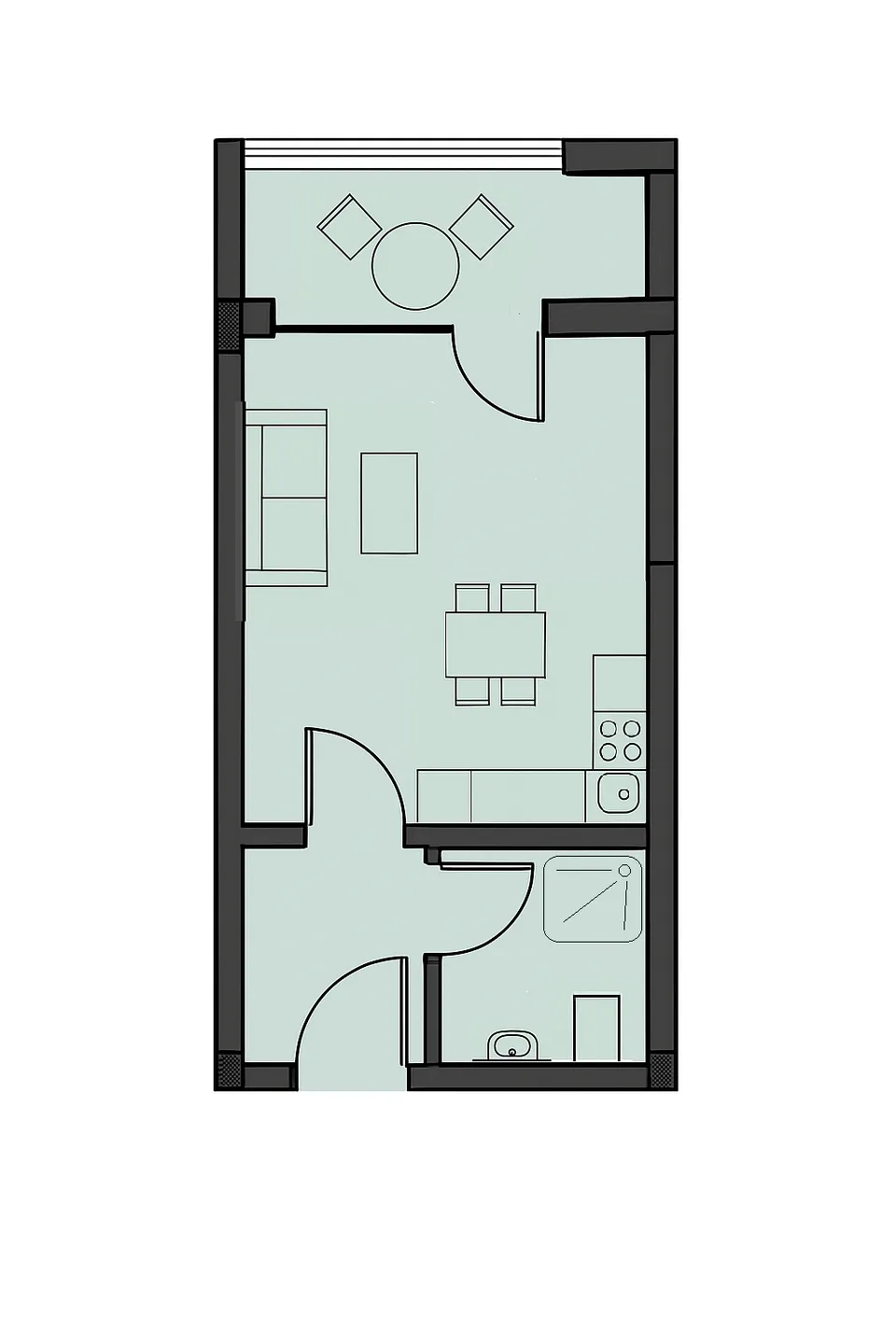 | Вид на имота | Едностаен апартамент | Площ | 42.89 |