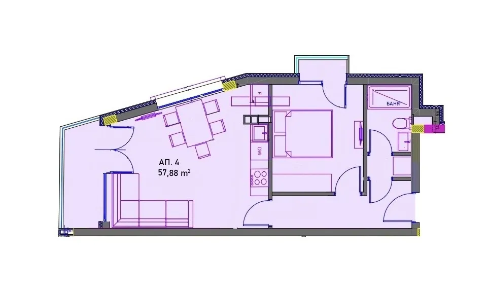 | Вид на имота | Двустаен апартамент | Площ | 70.35 |