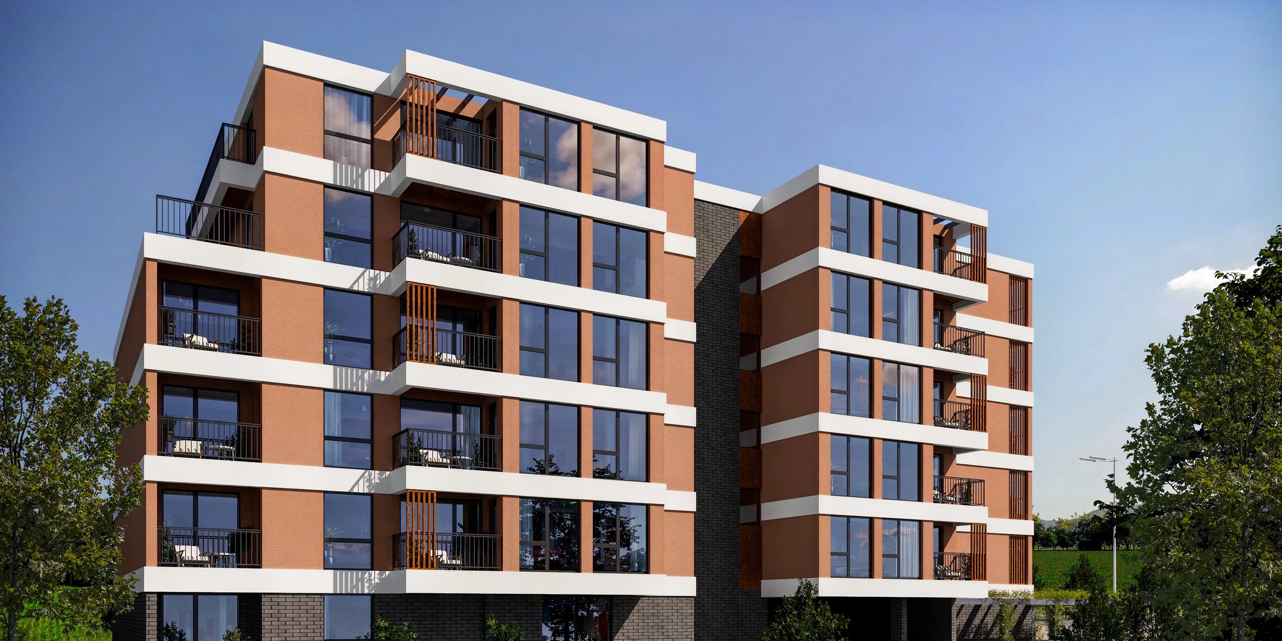 Съвременна градска архитектура, изпълнение с висококачествени материали и безкомпромисно внимание към детайла.