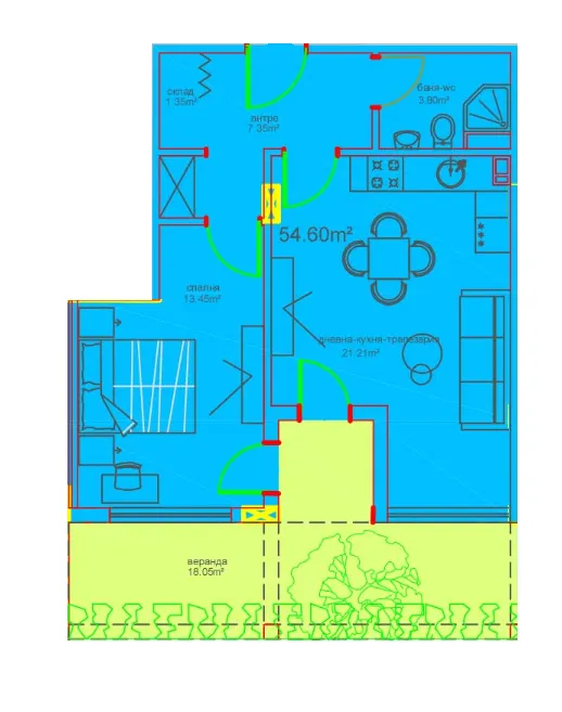 | Брой спални | 1 | Брой бани | 1 |