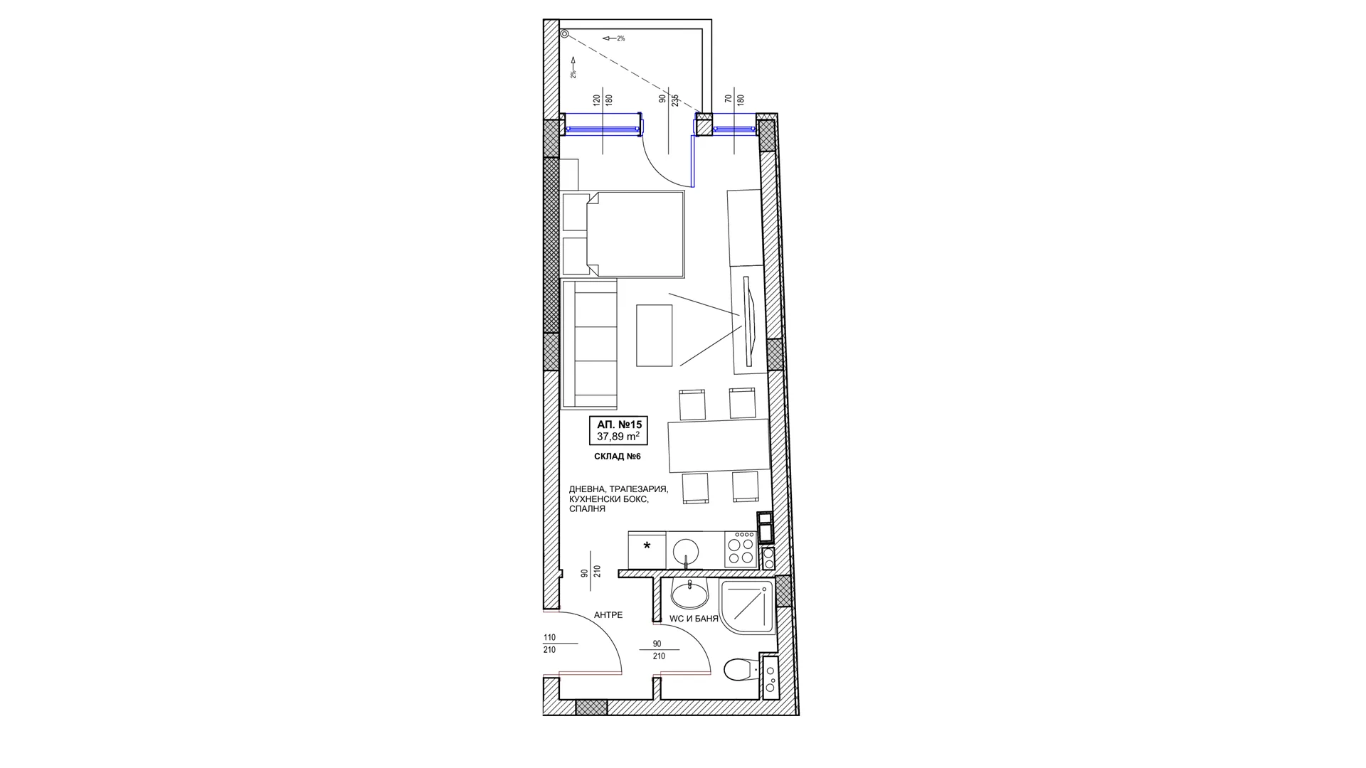 | Вид на имота | Едностаен апартамент | Площ | 48,55 |
