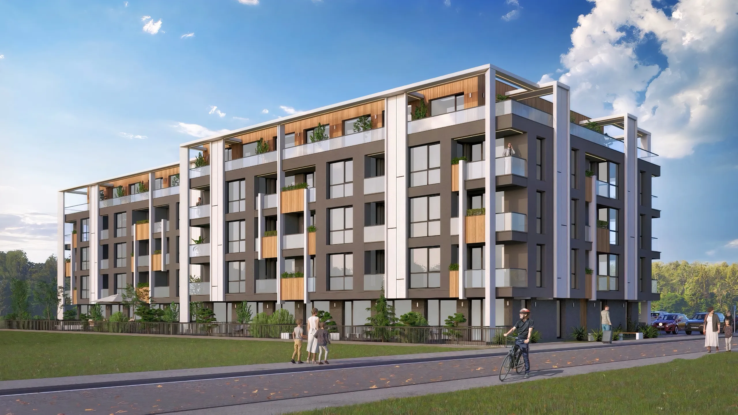 Сградата впечатлява със своята съвременна визия и практична архитектура: четири жилищни етажа, полуподземен етаж с паркоместа, асансьор и външен паркинг. Проектът включва общо 16 апартамента – 12 двустайни и 6 едностайни, които осигуряват ползване за обединение и комфорт.